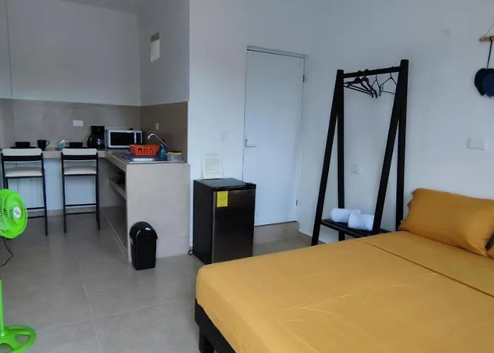 Casa En Mahahual Cerca De La Playa D4 Appartamento, di 17 m^2, offre una vista sul cortile interno e una posizione a 2 km da Mahahual, Quintana Roo.